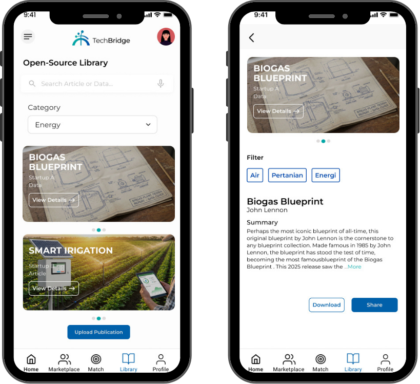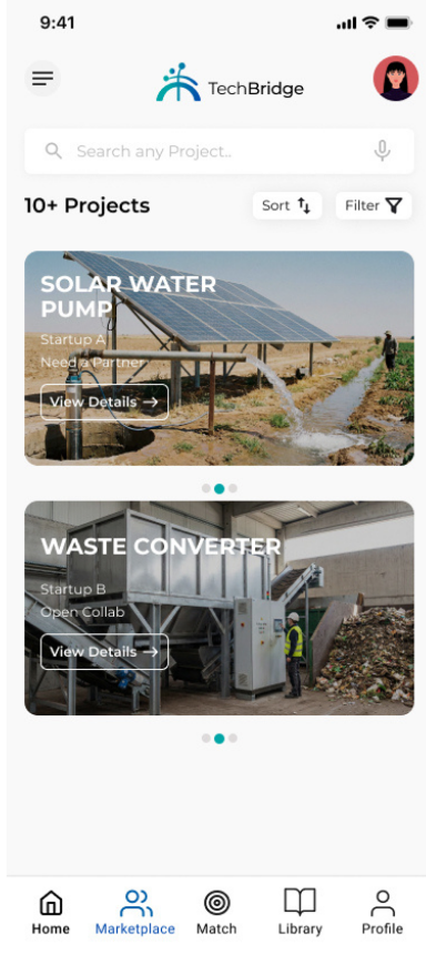 TechBridge membantu mempertemukan inovator, industri, dan investor dalam satu platform kolaborasi untuk mengembangkan dan menerapkan teknologi ramah lingkungan. Akses solusi berkelanjutan, bangun koneksi strategis, dan wujudkan inovasi yang berdampak nyata — semua dalam satu aplikasi.