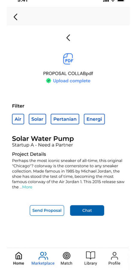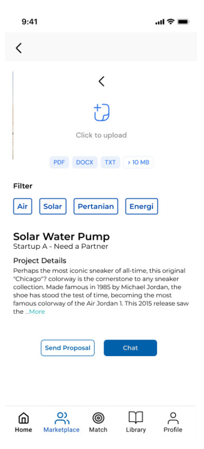 Scene : Startup atau partner lain melihat postingan tersebut di forum dan menghubungi peneliti melalui fitur Direct Message atau Collaboration Request. User action : Mengirim pesan, mengajukan proposal kolaborasi, dan memulai diskusi teknis mengenai teknologi atau kebutuhan proyek.